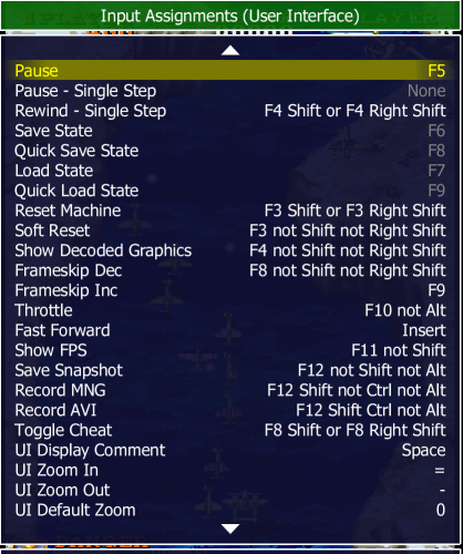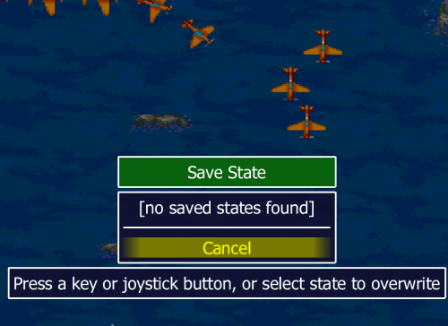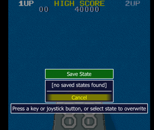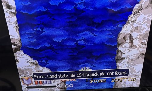 Thank you so much! This helps get me on the right track! I set the keys for save, load, quick save and quick load. I'm using MAME 0.269. I also have "pause" configured, and when I go to that menu, save doesn't work either. Regardless of whether I do it from the pause menu or not, When I hit the quicksave key, I get the screen to pop up saying: Error:Failed to open gamename\quick.sta for save state operation. When I hit the "quickjload" key, I get the screen saying: Error:Load state file gamename\quick.sta not found When I hit the "save" key, I get this screen saying: [no saved states found] and I can't do anything other than exit (as far as I can tell). Lastly, when I hit the "load" key, I get this screen saying: [no saved states found] Thanks in advance for any ideas! -