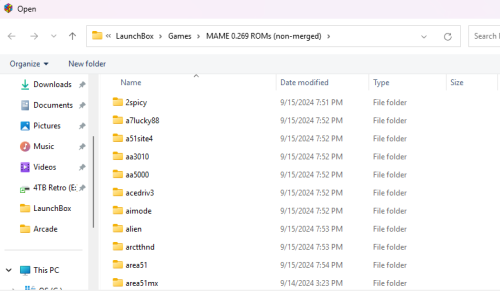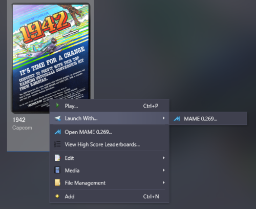 OK, so from Launchbox, when I click on 1942 (faster to load, so I started using 1942, but all the same behavior as 1941), this is what I see: then, I click on Open MAME 0.269... and the game loads. When I try to save, I see this: If I hit "1" I get this: When I Look at my MAME shortcut, it is this location: A And again, loading MAME directly via this shortcut, and then selecting 1942, I AM able to save and load games as normal. Should I have Launchbox extract ROMS? It is currently set to "no". -