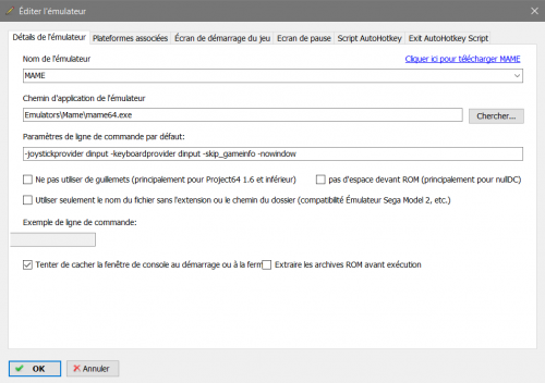 Here is the screen capture. Don't ask me what's that command line, i got it somewhere on the internet when i searched how to add mame in Launchbox with a working Xbox360 pad