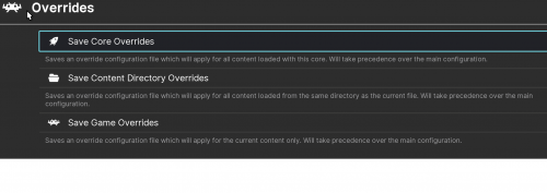 but what's that quick menu Overrides option for then ? I can't find where the game specifis option saving is, i never uded it it's in quick menu ?