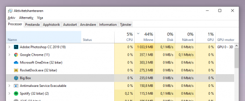 However, I have a very annoying problem happening often that I can't seem to find a solution for. Not always, but most of the time BigBox doesn't seem to exit properly and just stays as an invisible process (see attached image) in the task manager never disappearing. I have let it be for hours but never seems to close. I've also tried BigBox on two different computers but the problem happens there as well. I always have to force close it which I've understood can result in corrupted data if I am unlucky. I am using a custom theme but seems to happen with the default theme as well.