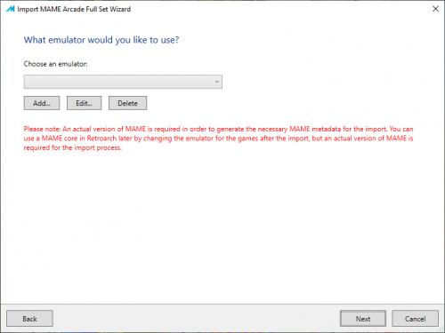 After going through all the options, I want to use Retroarch's mame2003-plus core for MAME. I went through the import process and got to this point: So if you read the documentation https://docs.libretro.com/library/mame2003_plus/, the mame2003-plus core uses MAME 0.078 as a base with some roms updated with the MAME 0.223 or later but I'm just going to use 0.223 in this post. I'm thinking using MAME 0.078 or MAME 0.223 might not recognize all the roms. MAME 0.078 would not pick up the update roms while MAME 0.223 will see many 0.078 roms as invalid. Of course the mame2003-plus rom set has many duplicate I want to filter out. If there is no straight forward way, I thought of this tedious method: Import into LB a Full non-merged 0.078 set, stripping out what I don't want (clones, non-world region, etc.) Export that set from Launchbox Follow the documentation for the mame2003-plus core in libretro docs (https://docs.libretro.com/library/mame2003_plus/) Generate the XML Dat from RA/mame2003-plus core Validate ROMS with clrmamepro rebuild pulling in any missing roms from 0.223 roms and rollbacks. Any missing roms SHOULD be the clones I don't want Import that set using MAME 0.223 but not sure how that would pull in ROMS from the 0.078 set that would not be valid 0.078 OR, after typing all this out, just make sure my mame2003-plus set is up-to-date and just do step 4. Again, not sure how importing using MAME 0.223 would pull in 0.078 roms.