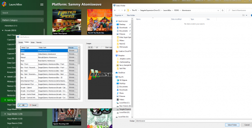 Screenshots showing - a.) That I have the ROM folder correctly defined for where I store my Atomiswave ROMs through the "Edit" feature when rightclicking on the Atomiswave platform within Launchbox - b.) Showing the response from Launchbox when I ask it to scan for added roms - c.) Launchbox recognizing another ROM file that is sitting in that directory when it is specifically selected using the Import ROM feature - Please let me know if I can provide any additional details. -