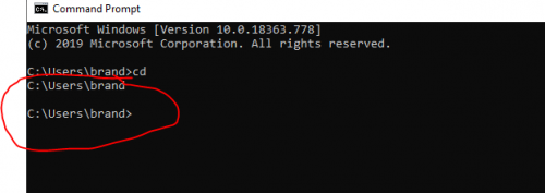 when I type cmd.exe the command prompt box opens and shows the path C:\Users\bran> If I type CD i returns C:\Users\bran> (same as was already there). Can't seem to move path this? What should I see after typing CD. drag the mame folder after but got '"C:\Users\bran\Emulators and Roms\MAME"' is not recognized as an internal or external command, operable program or batch file."