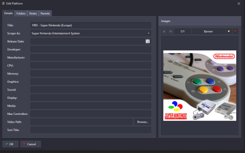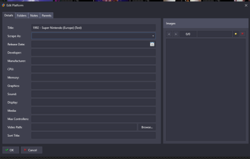 I hope someone can help me and reproduce this. LB-Version is 12.11. This is the platform I create. I give it a name and under "Scrape As" I choose "Super Nintendo Entertainment System". Then I choose my Emulator & Core (don't worry about the RA-version, it's the latest one, I just messed up the name) I leave the files in their current location The last two are not really important, just for completion. Now it downloads the metadata, covers etc.! So far so good. I noticed a lot of wrong coverart (some are for xbox, gba etc.) and EmuMovies was totally ignored and skipped (without a message, it just does not try to download any videos) Then I checked "edit platform" and noticed that there's no more "scrape as" and no metadata about the system at all. The dropdown-menu is empty. I'm really desperate and don't know what to do. Thanks for any help.