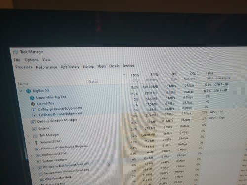 Well I have had big box running since first posting this and you can see in my screenshots here it is still using 15% or more which is even more than my running game is using.