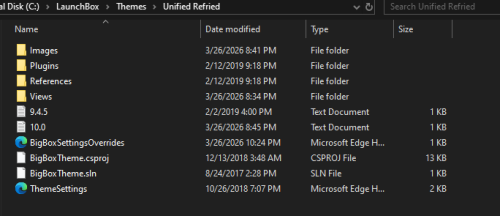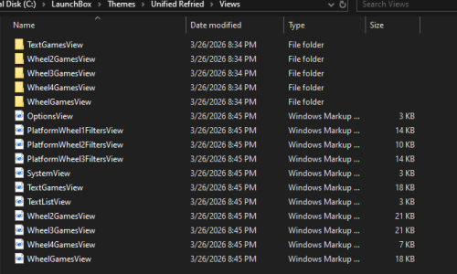 Hey guys, I have been at this for days and still don't know why my BB themes don't look like the demos. I have downloaded the platform/playlist/category theme videos and I can see them in my LB/videos folder. I wanted to use Unified Redux but could only manage getting a grey back ground so I switched to Unified Refried 2.0 with the Queso Fresco addon. However I have no idea which xaml files to rename and what to change inside each of the many xaml files in the LB/themes/unified refried/views folder. I also followed instructions from the dev of the refried theme to create a copy of the entire refried folder, rename it and then change the naming structure of the xaml files. Unfortunately, the instructions don't indicate what/where exactly needs to be done at this point...just "rename the custom view xaml files to you platform name". What does this mean? Here are some examples of how a few of my themes look in BB. The theme that looks the best (but still missing the nice artwork) is Refried. I'm clearly missing steps even though I thought I had followed various instructions for each theme and their artwork/video files via the web and through LB and emumovies (I have their premium account). Can anyone help walk me through this for either Unified Refried or Redux? Thank you!