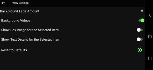 I'm having a couple of issues that were not happening until recently with the last couple of updates. Before, I was able to change the background fade amount. Now it stays at 68. When I long press on it nothing happens. Also when I delete the box image, game title screenshot image, game screenshot image, and background images to just show the background video on any of my platforms (including Android), they just reappear when I switch platforms or close my app and open it back up again. Any suggestions on how to fix these issues. Here is where the Fade Amount shows 68. Regards