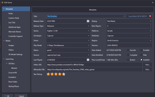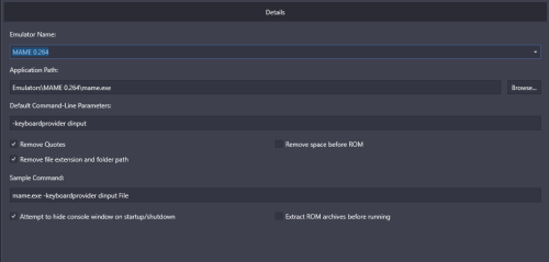 Hello everyone. I recently made a topic about Naomi and was able to fix that issue. Now, I am looking into my MAME .264 import and after the import nothing will open under Launchbox. Everything does load under MAME .264 by itself. I have changed the mame.ini to know where my roms are. I have changed the command lines to have and to have not options in there. My examples are -artwork_crop -skip_gameinfo -waitvsync -nofilter -keyboardprovider dinput -rompath %D:\titles.clones% and -keyboardprovider dinput In honesty, I am unsure where we tell launchbox where our MAME files are, but I don't think that is the problem. I have updated from Mame .260 to Mame .264 using the full import option and that did not work as well. I have updated my sets and whole nine yards, but nothing has worked. Any help would be great on this. Hey, here is my log. 2024-04-18 01:14:42 PM Unbroken.LaunchBox.Windows.Desktop.ViewModels.MainViewModel.window.Activated Before JoystickTimer Enabled Set 2024-04-18 01:14:42 PM Unbroken.LaunchBox.Windows.Desktop.ViewModels.MainViewModel.window.Activated Before Resume Video 2024-04-18 01:14:42 PM Unbroken.LaunchBox.Windows.Desktop.ViewModels.MainViewModel.window.Activated Before Check Already Focused 2024-04-18 01:14:43 PM GameDetailsViewModel AttachView LoadVideoMusic Start 2024-04-18 01:14:43 PM Music.Play Start 2024-04-18 01:14:43 PM GameDetailsViewModel AttachView LoadVideoMusic Completed 2024-04-18 01:14:43 PM Music.Kill Start 2024-04-18 01:14:43 PM Music.Kill Finished 2024-04-18 01:14:43 PM Music.Play Empty Music Path 2024-04-18 01:14:43 PM Music.NotifyTrackList Start 2024-04-18 01:14:43 PM Music.NotifyTrackList Invoke WPF 2024-04-18 01:14:43 PM GameDetailsViewModel.Dispose: Begin... 2024-04-18 01:14:43 PM GameDetailsViewModel.Dispose: Marked disposed true... 2024-04-18 01:14:43 PM GameDetailsViewModel.Dispose: Star rating faded nulling... 2024-04-18 01:14:43 PM GameDetailsViewModel.Dispose: Video control dispose... 2024-04-18 01:14:43 PM GameDetailsViewModel.Dispose: Video control nulling... 2024-04-18 01:14:43 PM GameDetailsViewModel.Dispose: Invoking UI thread... 2024-04-18 01:14:43 PM GameDetailsViewModel.Dispose: Nulling out all image sources... 2024-04-18 01:14:43 PM GameDetailsViewModel.Dispose: Completed. 2024-04-18 01:14:45 PM Music.Pause Start 2024-04-18 01:14:46 PM Music.Pause Start 2024-04-18 01:14:46 PM MameHighScores.Prepare: Beginning the preparation process... 2024-04-18 01:14:46 PM Aborting MameHighScores.Prepare: Uploading MAME high scores is disabled in settings. 2024-04-18 01:14:46 PM Begin M3U Check. 2024-04-18 01:14:46 PM RomPath after M3U build: D:\titles.clones\avspu.zip 2024-04-18 01:14:46 PM Game.PlayCount changed from 5 to 6: Alien vs. Predator (Arcade) 2024-04-18 01:14:46 PM DataManager.SaveInternal started. 2024-04-18 01:14:46 PM Saving InputBindings.xml... 2024-04-18 01:14:46 PM Saving GameControllers.xml... 2024-04-18 01:14:46 PM Saving ListCache.xml... 2024-04-18 01:14:46 PM GameDetailsViewModel AttachView LoadVideoMusic Start 2024-04-18 01:14:46 PM Music.Play Start 2024-04-18 01:14:46 PM GameDetailsViewModel AttachView LoadVideoMusic Completed 2024-04-18 01:14:46 PM Music.Kill Start 2024-04-18 01:14:46 PM Music.Kill Finished 2024-04-18 01:14:46 PM Music.Play Empty Music Path 2024-04-18 01:14:46 PM Music.NotifyTrackList Start 2024-04-18 01:14:46 PM Music.NotifyTrackList Invoke WPF 2024-04-18 01:14:46 PM GameDetailsViewModel.Dispose: Begin... 2024-04-18 01:14:46 PM Saving Settings.xml... 2024-04-18 01:14:46 PM Saving ImportBlacklist.xml... 2024-04-18 01:14:46 PM Saving C:\Users\lowry\OneDrive\Desktop\LaunchBox\Data\Platforms\Arcade.xml... 2024-04-18 01:14:46 PM Unbroken.LaunchBox.Windows.Desktop.ViewModels.MainViewModel.window.Deactivated Start 2024-04-18 01:14:46 PM Unbroken.LaunchBox.Windows.Desktop.ViewModels.MainViewModel.window.Deactivated Before Pause Video 2024-04-18 01:14:46 PM Unbroken.LaunchBox.Windows.Desktop.ViewModels.MainViewModel.window.Deactivated Completed 2024-04-18 01:14:46 PM GameDetailsViewModel.Dispose: Marked disposed true... 2024-04-18 01:14:46 PM GameDetailsViewModel.Dispose: Star rating faded nulling... 2024-04-18 01:14:46 PM GameDetailsViewModel.Dispose: Video control dispose... 2024-04-18 01:14:46 PM GameDetailsViewModel.Dispose: Video control nulling... 2024-04-18 01:14:46 PM GameDetailsViewModel.Dispose: Invoking UI thread... 2024-04-18 01:14:46 PM GameDetailsViewModel.Dispose: Nulling out all image sources... 2024-04-18 01:14:46 PM GameDetailsViewModel.Dispose: Completed. 2024-04-18 01:14:46 PM Unbroken.LaunchBox.Windows.Desktop.ViewModels.MainViewModel.window.Activated Start 2024-04-18 01:14:46 PM Unbroken.LaunchBox.Windows.Desktop.ViewModels.MainViewModel.window.Activated Before JoystickTimer Enabled Set 2024-04-18 01:14:46 PM Unbroken.LaunchBox.Windows.Desktop.ViewModels.MainViewModel.window.Activated Before Resume Video 2024-04-18 01:14:46 PM Unbroken.LaunchBox.Windows.Desktop.ViewModels.MainViewModel.window.Activated Before Check Already Focused 2024-04-18 01:14:46 PM AddEditGameViewModel Closed Updating GameDetailsViewModel 2024-04-18 01:14:47 PM GameDetailsViewModel AttachView LoadVideoMusic Start 2024-04-18 01:14:47 PM Music.Play Start 2024-04-18 01:14:47 PM GameDetailsViewModel AttachView LoadVideoMusic Completed 2024-04-18 01:14:47 PM Music.Kill Start 2024-04-18 01:14:47 PM Music.Kill Finished 2024-04-18 01:14:47 PM Music.Play Empty Music Path 2024-04-18 01:14:47 PM Music.NotifyTrackList Start 2024-04-18 01:14:47 PM Music.NotifyTrackList Invoke WPF 2024-04-18 01:14:47 PM GameDetailsViewModel.Dispose: Begin... 2024-04-18 01:14:47 PM Aborting MameHighScores.Parse: Uploading MAME high scores is disabled in settings. 2024-04-18 01:14:47 PM GameDetailsViewModel.Dispose: Marked disposed true... 2024-04-18 01:14:47 PM GameDetailsViewModel.Dispose: Star rating faded nulling... 2024-04-18 01:14:47 PM GameDetailsViewModel.Dispose: Video control dispose... 2024-04-18 01:14:47 PM GameDetailsViewModel.Dispose: Vid