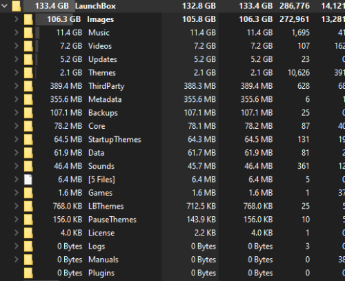 7. Hi, I have LaunchBox installed onto my C drive. The problem is that it's a small drive and LaunchBox is taking up 133GB with all the cover, videos, and meta data for my library of games. I need to move this folder : C:\Users\M***\LaunchBox (134GB), to another drive way larger. I don't want to uninstall LaunchBox because I will have to reconfigure everything that I've spent many months on organizing and configuring. At least I'm assuming I would have to? So is there a way I can update this C folder path to another larger drive? Thanks in advance!