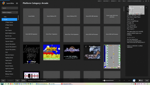 11. No, I don't want SoftwareList, nor I have a set for it, I just have a full MAME 0.231 set and wish to import the Arcade-only games, including unplayable ones. I'm talking about SoftwareList because when I uncheck "Skip unplayable games", after scanning the ROM set, things like c64, AMC, 6501 and many other (hundreds or thiunsands) entries like that appear in the list of things to be imported, but those things are not present in my MAME ROM set. If I go on, among the actual games, many blank slots with those names appear in Launchbox. EDIT: I am on another PC now, I'll post screenshots tomorrow