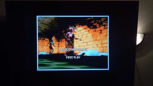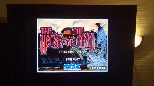 I did the following: First I took Demulshooter out of my bat.file to start a game. I found that one to be the culprit, apparently!! Now the bat file just starts the emulator and the game in it. I opened up the emulator.ini and changed the resolution to 1280:960 (=4:3 screen for all classic shooter games) I applied Reshade to the emulator with the usual two fx. collections already ticked in the selection menu. With a simple graphics editor software I created a white rectangle with a 4:3 ratio, made the inside area transparent and saved it as a .png file (there are free websites that make any picture you upload transparent; I use https://www12.lunapic.com/editor/). I started the game, pushed "Pos 1" to access the Reshade menu, and with the Layer.fx I applied the border around the game frame (with the adjust buttons in the Layer.fx menu you can do that almost to the pixel). Voilá! The only downside to this approach is that you don't have fancy bezels for the left and right side of the 16:9 screen but I really couldn't care less as long as I have dead-on accuracy for my crosshairs. When I play a game I don't notice the bezels anyway. I also realized that the main reason for my jittering crosshairs in many games were actually the often much too bright bezels! In other games like "The Lost World" I made them much darker than the original, which in turn made my crosshairs much steadier, so as far as I'm concerned a black area left and right is best anyway (but that's just me). If others can get the Sinden gun to accept 16:9 and 4:3 screen areas with one initial 16:9 calibration in the Sinden menu (as everybody is telling me) they are probably very happy (or lucky). My approach works, at least for me. If I can help anybody who is reading this with the same problem I'd be more than happy as well. NB: Definitely try out the Reshade Technicolor2.fx or the Vibrance.fx, it makes every game much more colorful and, yes, vibrant! (And in case you wonder: I play lightgun games on the backglass monitor of a custom-made full size Williams Widebody pinball cabinet, which also serves as a virtual pinball setup (then of course with all three monitors active) but I found the backglass monitor ideal for lightgun games as far as size, height and distance when shooting are concerned. So of course the HOTD game images you see cover the whole monitor height (the photo is a bit dark, I know).)