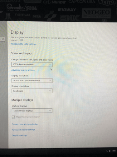 This is how the displays are setup this is the settings for display 1 (primary) this is the settings for display 2 (marquee) -