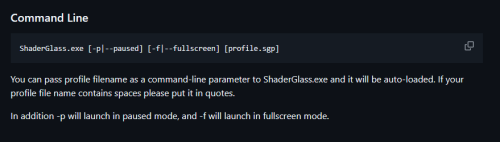 1. I recommend to be creating a profile in shaderglass. The github and manual included (same as all notes on the github) give excellent documentation on how to use and troubleshoot. No surprise chatgpt sucks and spits out a non working script. A script should be formatted something like this. launch shaderglass fullscreen and load a specific profile, wait for the game/emulator, wait for it to close, close shaderglass. Run, D:\Utilities\ShaderGlass\shaderglass.exe -f D:\Utilities\ShaderGlass\Profiles\RA_MB_TV2_16-9.sgp WinWait, ahk_exe xemu.exe WinWaitClose, ahk_exe xemu.exe WinClose, ahk_exe shaderglass.exe