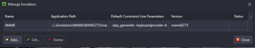 that little guy? I wouldn't worry about that little guy I think the check marks are to indicate if said emulator is on the most recent version. looks like v273 is latest now so....there ya go. no reason to update unless you need to. honestly, not even sure if this feature works for MAME? I just download v273 and pop it into my emulator list and status cell is still blank. idk, regardless, nothing to worry about. who knows where you went wrong. not enough info to help make sure games run ok in the emulator when not launching them through the frontend. if it works ok there, then start showing pics of your emulator window in launchbox since you might have something wrong there. settings I use for ex