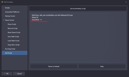 I can confirm this issue too. For my case I figured out following workaround - where putting the HotKey command "SoundSet, +1" at the end of every Pause Screen action of each emulator settings: This ensures that the audio is not muted again. On my emulation PC the systems audio level is permanently 100% - because in my case the audio line out is connected to a soundbar ... As game pad I use PlayStation 4 controllers in combination with DS4Windows. In LaunchBox the "PlayStation" - button is configured to show/hide the pause screen. In addition to this workaround I also created a "Profile Action" in settings of each profile inside DS4Windows - where simply said pushing the "PlayStation" button triggering a increase the audio volume: Yeah it is a freaking workaround - but works! đ