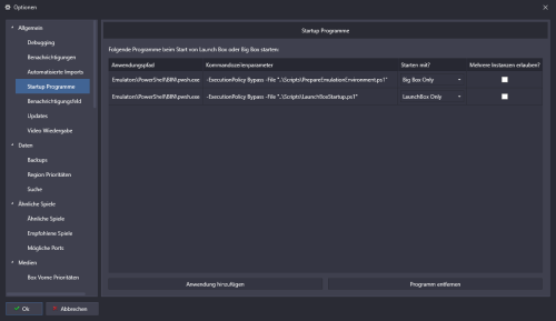 Interesting update: In the meantime I have tried out countless tests to locate the root cause. And now I'm quiet sure my "Startup Application" does effecting the LaunchBox startup. In my LaunchBox setup I'm using two custom PowerShell scripts for several automation reasons. These are located in the LaunchBox options under "General > Startup Applications": Don't be confused by the "PowerShell Emulator"! This is simply a portable version of PowerShell - which I stored inside the "Emulators" folder. I need this to keep my LaunchBox installation most portable as possible - regardless of the version of MS Windows ... đ Normally I finalize my PowerShell scripts with a "Exit" command in the last line. If I remove the exit command reps. comment it out, then LaunchBox starts as it should: Really strange! But for me the LaunchBox start do no longer hang/freeze in step "Loading interface ..." đ