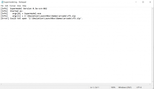 OK, I'm attaching 4 screenshots: Supermodel emulator settings; associated platforms page (yes, platform name here matches the actual platform list); Supermodel folder layout; and an example error log after trying to launch a game via the Supermodel UI. Why am I launching a game with the SM UI? Because when I try to launch a game with LB, it doesn't generate anything in the error log for some strange reason. But, maybe this observation is helpful. All of my MAME Roms are 7z and not zip, and Supermodel seems determined to open .zip files; HOWEVER, maybe that's just Supermodel UI's doing. I have the ROMs correctly linked inside of LB. So, then I tried using a swtrilgy.zip file I have and linking that inside of LB and then trying to launch SM, but no joy. So, it doesn't seem to be specific to the whole .7z file thing. I think it's just Supermodel UI which seems determined on naming all files with a .zip extension. Well, I'm at a complete loss. Anything someone can point out would be most appreciated! Thank you all very much for your time.