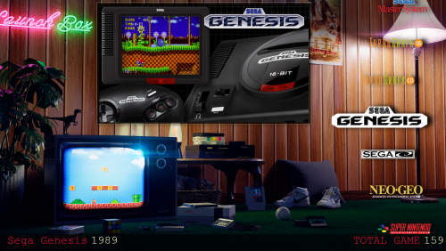 В интернете подходящих фонов я не нашел, поэтому пришлось изучать 3D, а именно Blender, чтобы создать пару картинок на эту тему. Да, я, наверное, спятил, чтобы изучать 3D с нуля ради двух картинок. Планировалось создать атмосферу консолей разных поколений.
