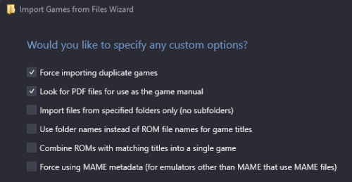 On first launching this beta I let it import, interesting to see what it would find as nothing has changed with no files being added, however the imported quickly found 1300+ roms to install, which I quickly stopped but not before it could import 250+ roms. What I found is that these roms are the ones I filtered out within the import full set wizard, such as games requiring CHD files. I think this will catch many people out who will end up importing vast amount of games they they original filtered out. I also noted some games that really should have been imported by the full set wizard, but wasn't. Here is my original import filter... The beta for example imported Badlands, which is a game that uses a wheel, so according to my above filter the full set wizard should have imported this but did not, and there are many other examples of this. Why would that be please?