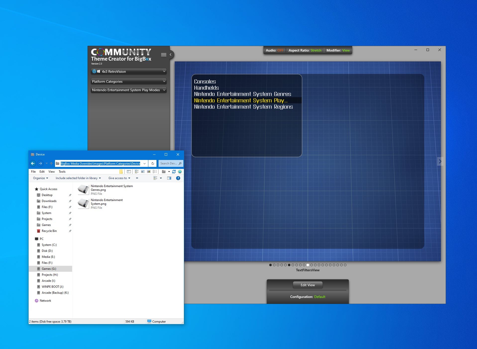 Currently attempting to create a theme using the Community Editor, and I notice that if I want a platform device to show up in the background, I use a device image in the right folder and it shows up when I have that platform selected in the menu. The problem is that although LaunchBox is fantastic at creating playlists for each system, if I want the device image to be displayed in the background when one of those sublists is active, I have to then duplicate that image and rename it according to the category or playlist, which will result in dozens if not hundreds of unnecessary duplicate images. There doesn't seem to be a way to get the image to fall back on the parent platform. Surely there must be a better way of doing this that won't involve making duplicates of the same image? -