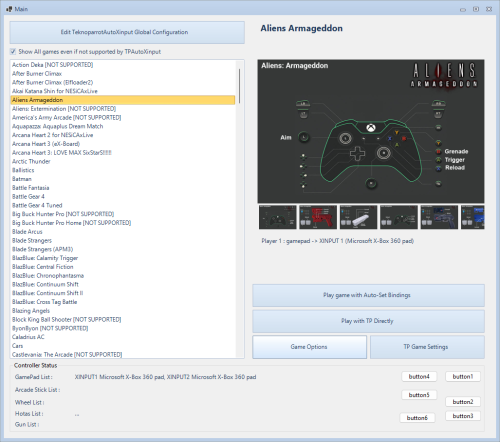 The feature list goes way beyond that, no disrespect, but it's like comparing an abacus to a full fledged calculator. I totally get that some extra features are not useful for some user (and that's why the advanced options allow to customize, enable/disable everything), but my app goes way further than a bunch of xml files - Does not replace your TP settings, does not mess with your game files, you can still use teknoparot with your own settings/bindings the app does nothing to them. - More robust than xml files to TP updates, it's not bulletproof, but since it take the default xml as base and replace just some part in it, it's more stable than just an xml overwrite that would quickly be outdated. - Include for all games, all the patches, fix, shaders, resolutions hacks, english translation, crosshairs, reshade, ffb and apply them without leaving extra files on your game folder, allowing you to keep them clean. Allow to export/import those in archive file on game basis so it could be shared within the community. - Auto assign network settings, define APM3ID once in the app configuration and auto assign it. - Every settings can be enabled / Disabled, there is options files where you can define tp options according to custom behavior on game basis (like inverse y axis if a gamepad is used, or change wheel sensitivity according to your device type) - Image with the controls for each game and controller type - Auto assign the controller type according of the device plugged (like if you unplug your wheel, it will use controller) - Differentiate gamepad and arcade stick and use different bindings for those. - Assign keyboard keys for Test/Service in xinput mode - Allow to change monitor resolution/frequency, enable/disable some monitor or make them primary on a game basis - Allow to use shifter, and make them work on some TP games that don't have shifter support - Auto assign ffb device (like if you unplug you wheel and use your xinput gamepad, your gamepad will be auto used as ffb device with rumble on) - Auto launch magpie (kinda like borderless gaming, but much better) when launching a game in windowed mode and auto configure it so it auto catch the game window - Auto launch demulshooter, without uac prompt and internally manage recoil output -from demulshooter, without using mamehooker- for gun4ir, sinden, wiimote (with lichtknare), or controller (other type of gun can fallback to mamehooker) - Crosshair selection with a library of crosshair - Auto apply white border when using sinden lightgun, put the game inside the border - Auto adjust lightgun aim in 4/3 game or if the TP aim need some slight adjustements - Multiple bind on game key, allowing to bind an action to multiple buttons (like reload on both pedal and a button on your gun for exemple) - Install games from scaning directory, install games from archives. And that's just on top of my head, i probably forgot a bunch of features. Now, if none of that is useful for you, sure you should just use xml files and i can even give you a tip, since my project is open source, you can actually generate them for nearly all games using my files here : https://github.com/nixxou/TeknoparrotAutoXinput/tree/main/config