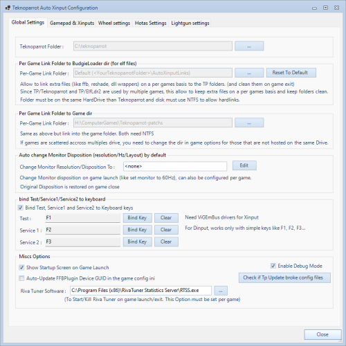 V0.09 -Shifter support You can add to your Dinput wheel a shifter (and a handbrake & clutch pedal). Racing games that are using gears, if your dinput wheel is plugged, will reassign gears to your shifter. Also, on games that don't have gear assignments but only shift up/down, you will find in the options a checkbox to enable gear change and make them work with your shifter. This is kinda hacky, so, it's disabled by default and need to be enabled for each game. Games that have this options are : Outrun, D1GP, Ford Racing, Git Club, R-Tuned, Sega Rally 3, Sega Race TV, Sega World Drivers Championship and FnF SuperCars. -Few games added -Some bug fix (like the resolutions change in the per-game options that was not working as intended) -Configurations files moved to a json file, so you probably need to redo your config TeknoparrotAutoXinput_alpha_v0.09.zip For the next version, i would like to extend the "per-game" extra files folder link to non-elf games to be able to keep a clean game dump folder and have extra files like ffb/reshade/dll wrapper and patch in a separate folder, but i'm not sure yet how to propose that on the gui. If someone use this feature, i would like your opinion.