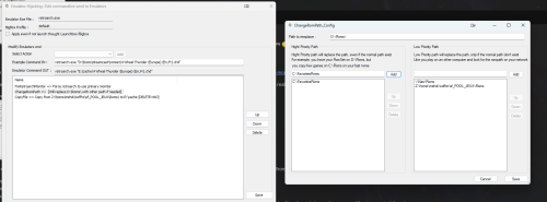 BigBoxProfile is an app that allows you to alter how Launchbox/BigBox and each of the emulators works, adding a profile system and tons of features that allow you to alter/customize how emulators work. What is BigBoxProfile ? This app is made of two parts that work together but can be used independently. 1- There is a part that alters how Launchbox/BigBox works and add a new command line parameter “--profile=” that will trigger users' configured settings. It allow you to bind a specific monitor, sound card for a profile or even use a specifics launchbox profile settings (for example make a bigbox profile that only show some of the platform/playlists) 2- The other part allow you to alter how emulators works, change the command line that they receive on the fly and do tons of stuff (change monitor settings, execute ahk code, use fallback path for rom, copy rom from distant path to local drive or ramdisk, extract archive, executes pre/post command lines, including command line as admin, force the game to be run as admin …) How does it works ? The app makes extensive use of a hidden feature of windows called the “Image File Execution” injection. If you edit the registry at “HKLM\SOFTWARE\Microsoft\Windows NT\CurrentVersion\Image File Execution Options\” you can register a key with the name of an executable to target and an app that will replace it. So, in my case, it create this kind of keys : That way, when you launch an executable called BigBox.exe, instead of launching it, it will call BigboxProfile.exe. My app will do actions and call bigbox (or launchbox) itself. So, it’s like an exe wrapper, but from an user standpoint, it’s invisible. As for emulator, it works the same, once a emulator exe is registered inside BigboxProfile the app will register a registry key to hijack it, do some user configured actions and then launch it. I’ve written modules that you can chain and order the way you want. Technically each module have 3 functions, ExecuteBefore, ExecuteAfter and AlterCommandLine If you chain Module1, Module2, Module3, it will do something like that when you launch the emulator : Execute ExecuteBefore for module 1, 2, 3. Pass the command line to module1 and alter it with the AlterCommandLine, then pass it to module2, and then pass it to module3, launch the game with the altered command line. On game close, execute ExecuteAfter on module 3, 2, 1. There is a slight subtlety when using launchbox auto-generated m3u for multidisc, but i will get to that later. I- Altering BigBox / Launchbox Ok, so first you can create BigBoxProfile Profiles Beware, here i’m talking about profile for BigBoxProfile (my app), it’s not related to Launchbox/BigBox settings (xml files inside the Launchbox/Data folder). You can actually alter how and witch xml files launchbox will use with a specific BigboxUtils program, but i will get to that point later. So BigBoxUtils is shipped with a “default” profile, you can add as many as you want. For example, you can add a profile called “tv” when you plan to use your BigBox on your TV Once a profile is made, you can call launchbox/bigbox to use this profile when you add –profile=<profilename> to the command line. Like BigBox.exe –profile=tv This use case is actually what made me code this app. I use bigbox on a computer that’s plugged to both my PC monitor in my room, and to my TV on the living room. I play mostly on my PC monitor, but i wanted to also be able to launch BigBox on my tv from a simple shortcut. The basic options for a BigBox Profile are here : Monitor Priority Set the monitor on witch BigBox (and eventually Launchbox if click on the checkbox) will launch. It change the monitor option in BigBoxSettings.xml before Bigbox start. (And for launchbox, it will try to move the window) By default it use as default “main”, and myself, i only use that. Main means “Main Display”, it’s a primary monitor, the one with that checkbox enabled : So, with the option set a Main, you are sure that you will not encounter weird Bigbox bug when the monitor change, it will always use the primary one, and if you change the primary Bigbox will launch on it, that’s really handy. But you can also specify an other display if you want. I actually wanted to show the real monitor name alongside DISPLAYX, but i ran into technical limitations. Use Monitor Disposition : So, here is the game changer, here you can register and set monitor layout. It actually use code from this excellent software : https://sourceforge.net/projects/monitorswitcher/ But it’s slightly altered to also manage DPI change/restoration. So, if i go back to my exemple with my TV profile, i will register a monitor layout where my TV is set as main monitor and since my monitor priority is set as main, when i launch bigbox.exe –profile=tv, it set my TV as main display, launch bigbox on it, and once bigbox is close it will restore my usual monitor layout. As a side note, on the last version of the app, in the bottom of the main form, i added a quick combo list : Quick Monitor Disposition Switch. You can use that to manually switch between saved monitor layouts. Set Primary SoundCard : It’s straightforward, once set, it will change the main playback device. Like with my tv profile, i will force the sound to use the TV HDMI. Use Specific Launchbox Data profile : It’s an hidden and experimental feature, please backup your data LaunchBox\Data before !!! So, with this features you can use a copy of some or all xml files of the Launchbox/Data folder for a BigBoxProfile. Restriction : It use hardlinks, so that only works if Launchbox/BigBox is used on a NTFS drive, not gonna work if launchbox is used from a network drive. Like, let says that for some reason, you want a custom InputBindings.xml for your tv profile. You create a folder called “Profile_tv” and put a copy of InputBindings.xml inside and that’s it. Now when you launch bigbox, if you use –profile=tv, it