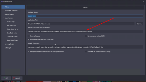 I start googling and fine some threads telling folks to check how the emulator is setup for a game. click game and edit. Check what emulator it's using. MAME. Ok, go to tools->manage->emulators->edit and check the platform associations and cmdline. It all looks fine to my noob eye. Hmm..