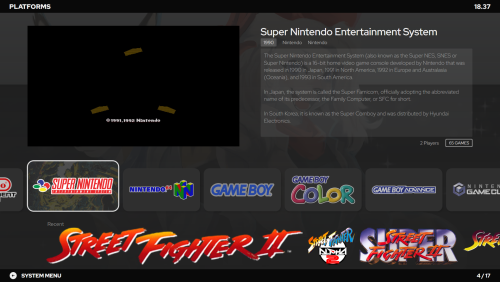 4. Hey, Big Box is inconsistent with showing clear logos and boxes in platform and game views. As shown in the pictures, NES does what I want; clear logos and box images for recent games and in the game list, it shows the 3d box model (That I can rotate and look around) of the game with clear logo on the list. But some platforms do what the SNES pictures show; Clear logos for recent and in games list it shows a clear logo instead of the 3d box model. And it is inconsistent with different platforms, instead of just being uniform about it for all platforms. I have tried refreshing image caches and force populating images. I have also tried changing the relevant options back and forth for the relevant viewing options. I have searched online for an answer for this, but I couldn't find any fix for this though. Hope someone can help!