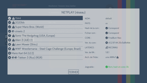 Hello, I am writing to you to find out if you can better integrate NetPlay into Big Box? Currently to use the netplay I have to use the ESCAPE menu and navigate through the menus in a tedious way. Also I have to use the mouse. It would be nice if you could define a shortcut key to show and start a netplay game and also improve the visual and navigation as it is on Recalbox: PS : I post this message here because I can't request a new feature on bitbucket which tells me: "We can't let you see this page"