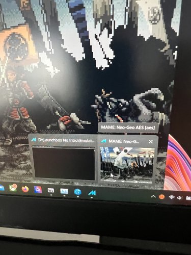 1. I have the latest update of big box. When I click play I get the load screen and then it opens the emulater in a second tab but the main tab stays in a black screen. I head audio but no gameplay. So I click the windows button, see that a second tab is open. I click on that tab and cannot access it at all. On windows 11. I closed out nahimic service too. Nothing allows me to switch to the emulater tab. In the picture below launchbox is on the left with a black screen and emulator opened up on the right. All videos I see show it doesnt create a separate screen, please help.