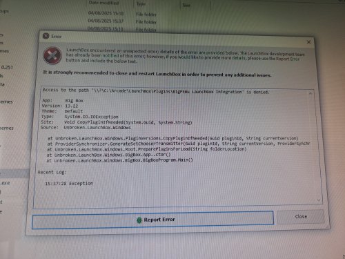3. Have been syncing files to Google Drive recently so am presuming this issue, not seen before, is linked to that. i've tried recovering the files from Google Drive and have downloaded 13.22 as opposed to existing 13.21 version but keep getting attached error message whatever Launchbox or Bigbox .exe I try.