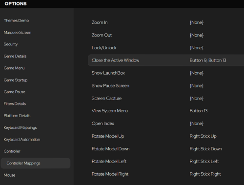2. Spot on - I made sure my PCSX2 had -batch as well as --fullscreen. I have since removed both command lines and changed the settings within PCSX2 Nightly itself to "Launch in Fullscreen," which works just as well. Since I made this topic, I decided to dive into a couple of prior topics from a couple years ago on these forums. I found the solution! In hopes that this helps someone else, MAKE SURE TO CHANGE YOUR CONTROLLER MAPPINGS WITHIN BIG BOX, NOT LAUNCH BOX! This little detail tripped me up at first. The next detail that I failed to notice was that the hotkey I needed to map was for "Close the Active Window," NOT "Exit." Reference screenshot: Note that "Close the Active Window" hotkey is way down towards the bottom. After changing these settings and re-mapping the "Pause Emulation" button within PCSX2 itself, I finally have a fully-working Big Box exactly as I wanted. Thank you so much!!