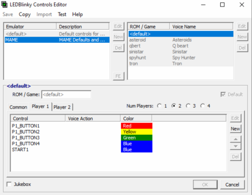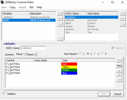 Hi, i have a clean install with Launchbox/Bigbox an only MAME (0.249). I have setup a <default> and a MAME/<default> in Controls Editor. When i select a game where is a mention in Colors.ini it all shows correct like [xmen2pa] . But a game that is missing [xiistag] it just loads a some crap i have never configured. Player 1 and 2 light up and nothing else. Default: Debug: [03.18.2023 11:04:24] [03.18.2023 11:04:24] LEDBlinky v8.2.1.0 [03.18.2023 11:04:24] Event Started: FE_START [03.18.2023 11:04:27] Settings.ini ******************** BEGIN [03.18.2023 11:04:27] [VersionInfo] [03.18.2023 11:04:27] Major=8 [03.18.2023 11:04:27] Minor=2 [03.18.2023 11:04:27] Release=1 [03.18.2023 11:04:27] Build=0 [03.18.2023 11:04:27] [GameOptions] [03.18.2023 11:04:27] LightGameControls=1 [03.18.2023 11:04:27] GamePlayLWAFile= [03.18.2023 11:04:27] GamePlayAniJukeboxOnly=0 [03.18.2023 11:04:27] GamePauseLWAFile= [03.18.2023 11:04:27] GamePauseSpeakControls=0 [03.18.2023 11:04:27] GamePauseSpeakHighScores=0 [03.18.2023 11:04:27] UseMameOutputs=0 [03.18.2023 11:04:27] LightPlayerStartCoin=1 [03.18.2023 11:04:27] GameStartLWAFile= [03.18.2023 11:04:27] GameStartSpeakControls=0 [03.18.2023 11:04:27] GameStartSpeakPrimaryControls=0 [03.18.2023 11:04:27] GameStartSpeakStartCoin=0 [03.18.2023 11:04:27] GameStartSpeakName=0 [03.18.2023 11:04:27] GameStartSpeakHighScores=0 [03.18.2023 11:04:27] GameStartSpeakText= [03.18.2023 11:04:27] AbortSpeechAnyKey=27 [03.18.2023 11:04:27] SpeakControlsPrefix= [03.18.2023 11:04:27] SpeakPrimaryControlsPrefix=Primary Control [03.18.2023 11:04:27] SpeakStartButton=Start Game [03.18.2023 11:04:27] SpeakCoinButton=Insert Coin [03.18.2023 11:04:27] GameStartDelay=0 [03.18.2023 11:04:27] GameStartDelayLEDsOff=0 [03.18.2023 11:04:27] GameStartStrobeSpeech=0 [03.18.2023 11:04:27] [FEOptions] [03.18.2023 11:04:27] FE=launchbox [03.18.2023 11:04:27] LightFEControls=1 [03.18.2023 11:04:27] DemoGameControls=1 [03.18.2023 11:04:27] DemoScrollDelay=1 [03.18.2023 11:04:27] DemoDuration=5 [03.18.2023 11:04:27] DemoIncludeAlwaysActive=0 [03.18.2023 11:04:27] FELWAFile= [03.18.2023 11:04:27] FEScreenSaverLWAFile= [03.18.2023 11:04:27] FEScreenSaverRandomText=0 [03.18.2023 11:04:27] FEScreenSaverRandomTextDelay=60 [03.18.2023 11:04:27] FEScreenSaverRandomTextBerzerkMode=0 [03.18.2023 11:04:27] FEStartLWAFile=3backsweep.lwax [03.18.2023 11:04:27] FEStartLWASingleLoop=1 [03.18.2023 11:04:27] FEStartLWADuration= [03.18.2023 11:04:27] FEStartSpeakText= [03.18.2023 11:04:27] FEStartStrobeText=0 [03.18.2023 11:04:27] FEQuitLWAFile= [03.18.2023 11:04:27] FEQuitSpeakText= [03.18.2023 11:04:27] FEQuitStrobeText=0 [03.18.2023 11:04:27] FESpeakControlsKey=0 [03.18.2023 11:04:27] FEStartSpeakControls=0 [03.18.2023 11:04:27] FEListSelectedLWAFile= [03.18.2023 11:04:27] FEButtonFlash=0 [03.18.2023 11:04:27] FEButtonFlashSpeed=50 [03.18.2023 11:04:27] FESettingsFile=C:\Program Files (x86)\LaunchBox\Data\BigBoxSettings.xml [03.18.2023 11:04:27] HLActive=0 [03.18.2023 11:04:27] HLExeNameOverride= [03.18.2023 11:04:27] FERunGameFromSS=0 [03.18.2023 11:04:27] FESystemListsNames=Main Menu [03.18.2023 11:04:27] [MAMEConfig] [03.18.2023 11:04:27] Colors_ini=C:\LEDBlinky\Colors.ini [03.18.2023 11:04:27] MameFolder=C:\Program Files (x86)\LaunchBox\Emulators\MAME 0,249 (1) [03.18.2023 11:04:27] MameControllerFile= [03.18.2023 11:04:27] UseMameDefaultForOtherEmulators=0 [03.18.2023 11:04:27] MameOutputBufferSize= [03.18.2023 11:04:27] MameControlsFile=C:\LEDBlinky\Controls.ini [03.18.2023 11:04:27] MameXmlFile=C:\Program Files (x86)\LaunchBox\Emulators\MAME 0,249 (1)\mame.xml [03.18.2023 11:04:27] MameXmlFileSize=272854628 [03.18.2023 11:04:27] UseMinimizedMameXml=1 [03.18.2023 11:04:27] UseMameToTriggerGameStart=0 [03.18.2023 11:04:27] LoadMameFilesAtStartup=1 [03.18.2023 11:04:27] UpdateMameIniOutput=1 [03.18.2023 11:04:27] IgnoreSpacesInCfgMultipleInputs=0 [03.18.2023 11:04:27] Hi2txtFolder=C:\LEDBlinky\hi2txt [03.18.2023 11:04:27] Hi2txtNoDataMessage= [03.18.2023 11:04:27] Hi2txtDataFolderOverride= [03.18.2023 11:04:27] [RandomText] [03.18.2023 11:04:27] Text0=Get The Intruder [03.18.2023 11:04:27] Text1=Intruder Alert! [03.18.2023 11:04:27] Text2=I detect coin in pocket. [03.18.2023 11:04:27] [Speech] [03.18.2023 11:04:27] SpeechRate=-2 [03.18.2023 11:04:27] SpeechVolume=0 [03.18.2023 11:04:27] Voice=Microsoft Hedda Desktop - German [03.18.2023 11:04:27] [AudioAnimation] [03.18.2023 11:04:27] AudioDevice=0 [03.18.2023 11:04:27] AudioInput=0 [03.18.2023 11:04:27] SampleRate=30 [03.18.2023 11:04:27] AmplitudeMultiplier=0 [03.18.2023 11:04:27] AutoAmpMultTargetAvgLow=8 [03.18.2023 11:04:27] AutoAmpMultTargetAvgHigh=14 [03.18.2023 11:04:27] AutoAmpMultUpdateRate=2000 [03.18.2023 11:04:27] AAMode=1 [03.18.2023 11:04:27] AAFEStartLWAFile= [03.18.2023 11:04:27] AAGamePlayLWAFile= [03.18.2023 11:04:27] AAGamePauseLWAFile= [03.18.2023 11:04:27] AAFEActiveLWAFile= [03.18.2023 11:04:27] AAFEScreenSaverLWAFile= [03.18.2023 11:04:27] AACabAttractLWAFile= [03.18.2023 11:04:27] TriggerMode=2 [03.18.2023 11:04:27] TriggerThreshold=25 [03.18.2023 11:04:27] TriggerFrequency=1 [03.18.2023 11:04:27] TriggerDeadZone=5 [03.18.2023 11:04:27] ControlFrequencyList=P1B1|1,P1B2|2,P1B3|3,P1B4|4,P1START|5,P1TRACKBALL|6,P2B1|7,P2B2|8,P2B3|9,P2B4|10,EXIT|11,P2START|12 [03.18.2023 11:04:27] ControlThresholdList=P1B1|12,P1B2|11,P1B3|10,P1B4|9,P1START|8,P1TRACKBALL|7,P2B1|6,P2B2|5,P2B3|4,P2B4|3,EXIT|2,P2START|1 [03.18.2023 11:04:27] LockTriggerFrequency=0 [03.18.2023 11:04:27] LockTriggerThreshold=1 [03.18.2023 11:04:27] Decay=4 [03.18.2023 11:04:27] SpectrumMode=1 [03.18.2023 11:04:27] SpectrumColor1=clBlue [03.18.2023 11:04:27] SpectrumColor2=clFuchsia [03.18.2023 11:04:27] SpectrumColor3=clFuchsia [03.18.2023 11:04:27] SpectrumColor4=clRed [03.18.2023 11:04:27] SpectrumSingleAmpRange=1 [03.18.2023 11:04:27] [CabLEDs] [03.18.2023 11:04:27] CabLEDsMode=0 [03.18.2023 11:04:27] CabLEDControllers= [03.18.2023 11:04:27] CabFEStartLWAFile= [03.18.2023 