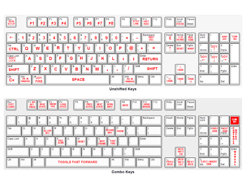 For example, as you can see on the back side of the card, certain CTRL keys must be bashed repeatedly and very quickly to select which digits of the NAV radio, COM radio, ADF, or TRANSPONDER will be increased/decreased by subsequent presses on the > and < keys (actually the , and . keys as they are used unshifted). For example, holding CTRL and rapidly tapping T 3 times will cause > and < to increase/decrease the 3rd digit of the TRANSPONDER. But when the CTRL key only takes effect on the first key pressed while it is held down, tapping T 3 times selects the 1st digit and then sends the elevators down two increments; likewise, CTRL-NN, instead of selecting the NAV radio's lower digits, selects the high digits and then sends the flaps down one increment. A plane crash typically follows .