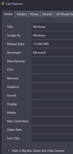I recently set up a new Launchbox installation and it automatically searched for local folders, like Steam. The local games were included under the created Windows platform. For this install, I am focusing exclusively on pinball games like VPX tables. I marked all of the local games as hidden, and also selected the hide in Big Box for the Windows Platform and the Computer Platform Category. This worked well to hide the games in Launchbox, but I noticed in Big Box discovery center it is recommending games that I have marked hidden. I made sure the Big Box setting to show hidden games was not selected, but either way it will not remove the hidden games. I could just delete the games, but it seems the Discovery Center should adhere to the hidden games setting. The games do not appear anywhere else in Big Box, just the discovery center. I tried refreshing the media without success. I am using the most recent version 13.11. Also, I am curious; is there a way to install Launchbox, maybe via command line, that skips searching local folders? Thanks for your time.