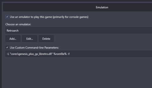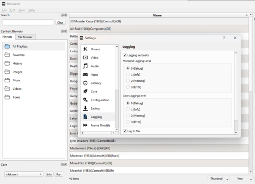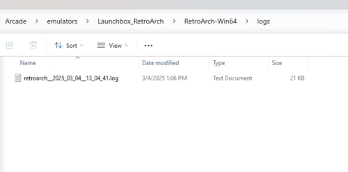 I can try to recreate this, I had both the Launchbox logfile turned on AND the retroarch logfile (I went into the console and turned it on) turned on. Retroarch produced no log launchbox produced the log I copied. Let me add the -v option to retroarch and see if that makes a difference. *edit* -v doesnt appear to make any difference here. Launchbox logfile create 7:26pm Nothing created -v added to the command line AND I manually turned on logging before hand in retroarch. This should be easy to replicate. Just choose a sega core and add quotes around %romfile% That was the hope. This particular game did not like the genesis_plus_gx_wide_libretro.dll core so I was trying to override what was being assigned to all the other games. In this case the logfile just wasnt useful because I could not see what was being passed. Debug would be easier if the logfile contained the command line that launchbox assembled. Just my $.02 You are correct that the exception mentioned at the start doesnt appear to be the issue. I still see the exception in a passing case. Although I dont know that that helps the launchbox debugger. Just makes the debugger even less useful