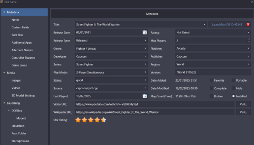 4. Hello, I'm a recent convert. I've got MAME version .273, and ROMs for .273 too (well, I updated to .274, but this made no difference otherwise). Some ROMs seem to work without trouble (e.g. Phoenix, Shinobi), but many don't work at all, the classic black screen and back to menu. There was a change recently, a game I'd played a lot (Street Fighter 2 - World Warrior) stopped working without me having changed anything. All the suggestions I see here relate to making sure versions match, maybe editing .ini files, reinstalling everything maybe. Nothing I've done has helped. A further thing is that I'm struggling to test games directly in MAME, I can't find them...! (the lack of a GUI in my version led me to find Launchbox...) Thanks in advance.