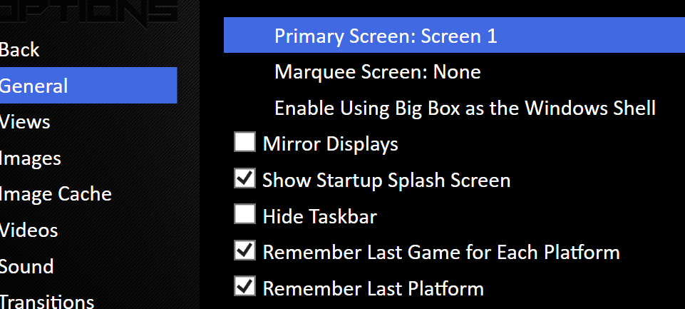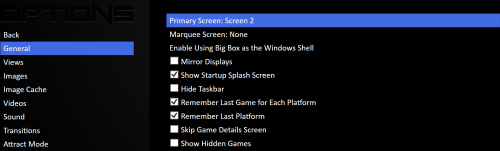 1. Hello all! I have a two-monitor setup. One monitor is much older than the other, and quite a bit smaller as well. Because of this, I'd like to make Screen 2 the default for BigBox to open on. I was able to find the setting for this easily enough, and it works perfectly for a time. However, after any reboots of my PC, BigBox seems to automatically revert to the original default settings of opening on Screen 1. I've tried it after running the program and making the change both normally and as an administrator. Any changes to the Theme save fine, but the settings seem to be more stubborn (Controller mappings for the BigBox UI like to reset as well!). I've tried looking through the BigBox.xml file to try and input the change there as well, but I'm afraid to say I don't understand it well enough to know what values need adjusting in there. I'm on Windows 11 with a NvidiaGeForce RTX 4070 GPU. Happy to answer any other questions if needed as well. Any advice is appreciated!