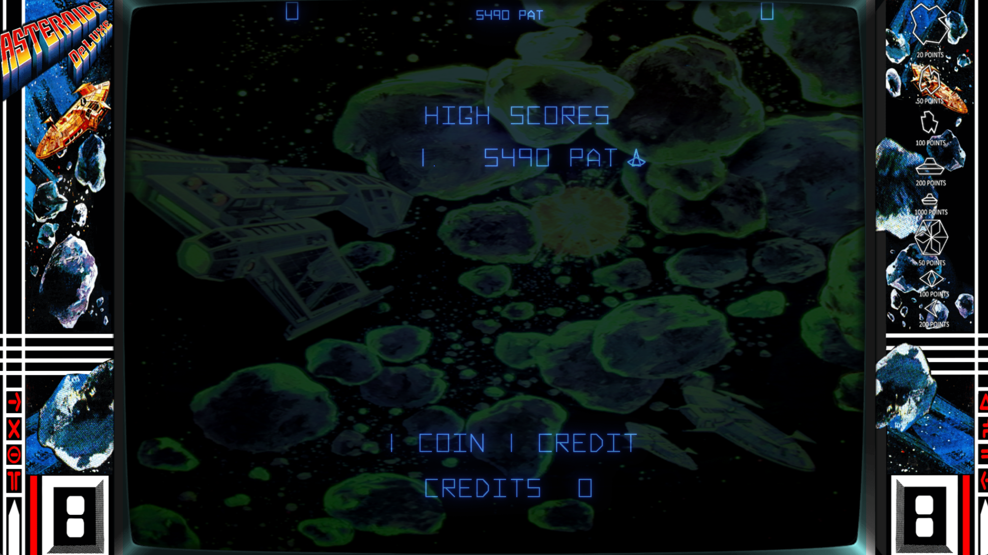 3. I couldn't find info on how to do this so I'm sharing it. Download the backdrop on this site: -->Downloads-->Game Media-->Arcade-->Asteroids Deluxe & Space Invaders - MAME Background / Backdrop Assuming you already downloaded the stock bezel through the GUI, you just need to add astdelux.png to the artwork folder 'astdelux.' Edit the default.lay file to this: Probably not the cleanest way to do that...but overlay, bezel AND backdrop display at once! In case you want them, here are the mods I did to the .ini file for the game (vector upscaling, etc): I really enjoy the game SO much more like this! Hope you do too!