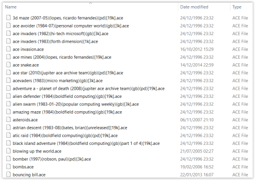 I can't tell much from your picture. Do your games each come as a zip with the file inside having a .tap extension, or are they like the posted picture where games have the .ace extension?