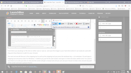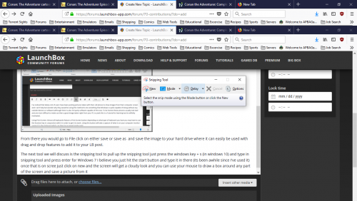 I've noticed that lately a lot of users have been posting pictures taken with their cell phone to show images from their computer screen and I can't help but wonder why they would be using this method to do something that Windows is quite capable of doing without any outside devices or software (although there is also 3rd party software capable of this too). To be honest these pictures usually look bad and are more difficult to make out then a good image taken right from your PC so yeah this is a Tutorial for learning but its selfishly motivated. Using Print Screen: Almost all keyboards feature a Print Screen button depending on what type of keyboard you have you may have to use the function key in conjunction with it in order to get it to work. Using this button will take a capture of what is on your computer monitor saving it to the clipboard which can then be accessed inside Paint. To open Paint just type paint in a search box. From there you would click on File and choose either save or save as and save the image to your hard drive where it can easily be used with drag and drop features to add it to your LB post. In Windows 10 (and I belive 8/8.1) you can also hit the windows key + print screen and it will auto save in your pictures folder. The next tool we will discuss is the snipping tool to pull up the snipping tool just press the windows key + s (in windows 10) and type in snipping tool and press enter. For Windows 7 I believe you just hit the start button and type it in there (its been awhile since I've used it). Once you have the Snipping Tool on screen just click on new and the screen will get a cloudy look and you can use your mouse to draw a box around any part of the screen and save a picture from it Example of snipFrom there you would use the same drag or drop method described above to place the images into the forum post There you have it two short example of how to easily capture images directly from your screen and post it in the forums. If you are using a Arcade cab or an HTPC without a keyboard or mouse I would suggest either running software like Unified Remote and turn your smart phone into a keyboard and a mouse to be able to take higher quality images directly from your PC or getting a mini keyboard since it will make your machine much more functional when you have a need to do things of this nature. EDIT: I just learned that you can also use alt+print screen to save a shot of only the active window which may be helpful also.