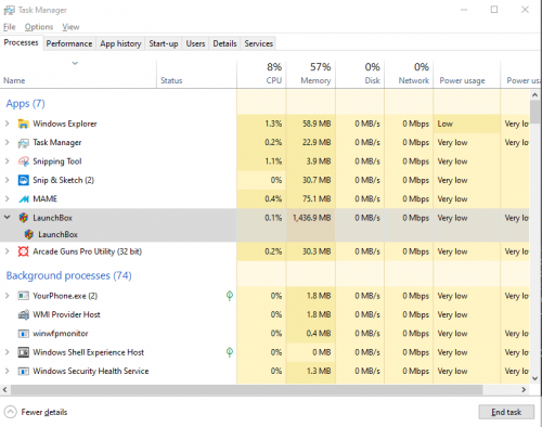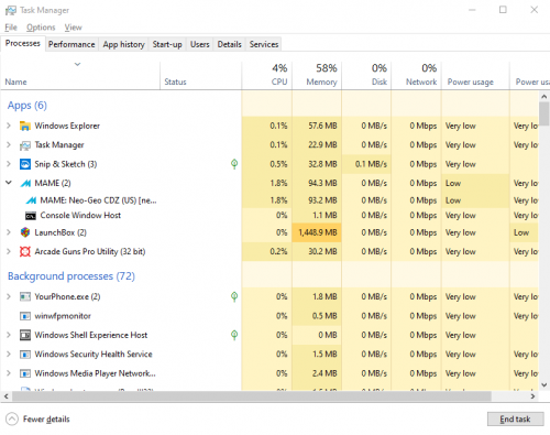 i did notice that my mame and mame neogeocd are shown differently on the task manager. EDIT: Hhhmm but can not seam to recreate that now. Anyway I tried pointing my MAME NeoGeoCD emulator to my standard Mame.exe and yea still the same problem so it's not a setting in my mame emulator that does it.... hmmmm