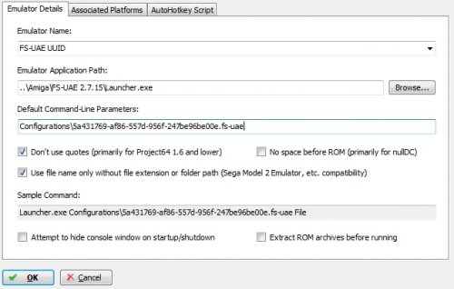That's only kinda true. Yes, typically they'll "work" without configuration, but not necessarily ideally. In my experience you need to have PRELOAD enabled in nearly all cases with WHDLoad games in order to keep them from going into full-blown seizure-inducing mode whenever it's loading data. Just try loading up say Defender of the Crown without any configuration - the screen flashes about 15 times before you even get to the character selection screen. Many WHDLoad games do this without PRELOAD enabled. The beauty of this method is that it's hooking into all of the premade community configurations so that for any of them that already have a community config, it pulls that config and uses it with your files. I will say that there are some games that just don't have an existing config so you'll still need to have a non-UUID FS-UAE emulator entry in LB because the "no quotes" and "no file extension" checkboxes make it unusable with anything other than UUIDs. In those cases I just use a default config that I made, add in the WHDLoad file in the hard drive section, add in PRELOAD in the WHDLoad Arguments section, and save the config as the name of the game. Then I use the config as my "rom" in LB and use the non-UUID FS-UAE emulator entry. The default config that I use as a starting point uses A1200, 8mb Fast RAM, Empty Floppy Drive Volume: 0 These were the settings that basically all of the community configs for WHDLoad games use. They would be different if you're using floppies.