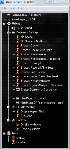 Alien Legacy has been updated to version 2.0. Details are in the "Special Notes" section of that page. I also added in an option to disable Antimicro in the Launcher this time. I can't imagine most people would need/want this, but it's there for those that do. The primary rationale for this is just in case someone had their own controller mapper software that they wanted to use instead. I also added in a control swap function with the controller implementation - the left and right sticks control the mouse cursor and the dpad controls the arrow keys. When you press right bumper it will swap the left stick controls with the dpad. Press it again and it swaps back. I changed the screenshot comparison option too - now instead of simply dropping you into the folder where the screenshots are located, it opens a fullscreen slideshow of the images via IrfanView Portable which you can flip between with the scroll wheel or arrow keys - pressing escape exits.