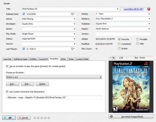 The dev versions are fine too, I'm not debating that, all I'm saying is 1.4.0 definitely works via Launchbox because that's what I'm using and telling someone to use a different version as if that's going to fix it doesn't make much sense to me; especially since 1.4.0 is working for him outside of Launchbox. @JJLR I'll still need to see the Launcher section of that game entry in your library.