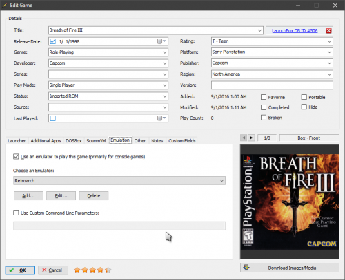 21. Well just for clarification, just because a game works in ePSXe that doesn't mean it works with the Mednafen PSX cores in RA (or Mednafen). You say your games are working in RA on its own outside of Launchbox so I will take your word on that so the above point has nothing to do with anything. Right click a game and edit and then go to the emulator tab and get a screenshot for me please.