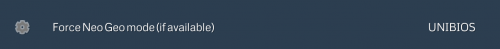 You set the ForceNeoGeomode to Unibios and then when you load a game you will see the green Unibios screen. At the screen press your A+B+C buttons that you have mapped for the FBA core, this will bring you into the Unibios configuration screen. In here you can make all the adjustments like region and AES / MVS among other things. Follow the on screen instructions for the Unibios settings, once you are done press the C button to exit the Unibios and into the game. You should then be able to close the game and when you reload it the settings you had set previously should be there, again though this will have to be done per game as far as I am aware of for now.