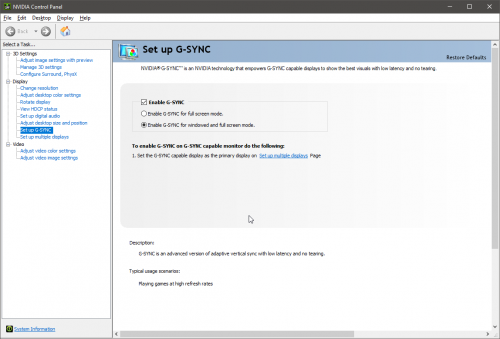 Where you do enable that overlay in the control panel ? I can't seem to find it and I don't ever see that overlay. Is this something that is a part of the GeForce Experience software ? If it is I have never seen it in there and I don't even have it installed currently because it was causing other issues recently. In Retroarch I make some settings adjustments and set my monitor to 144 Hz. Make sure Audio Sync is On in the audio settings. In the retroarch.cfg file look for 2 settings: audio_rate_control = "true" and set it to "false" video_refresh_rate = "59.xxx" and set this to match the Hz that your monitor runs at, for me this was "144"